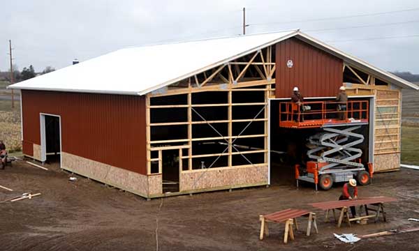 При зведенні корівника своїми руками на 10 голів краще вибрати каркасне спорудження з металевих профілів і ОСБ-плит або сендвіч-панелей.