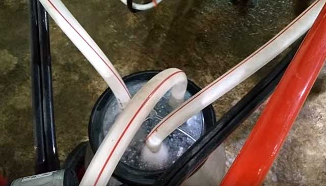 Спочатку пристрій необхідно відповідним чином підготувати до доїння. Агрегат повинен бути чистим і вимитим, кришку ємності треба щільно закрити. Слід звернути увагу на те, щоб кран вакууму виявився у відкритому положенні, а перемикач був вимкнений. Тиск в вакуумметрі потрібно виставити на позначку в 36-40 см.
