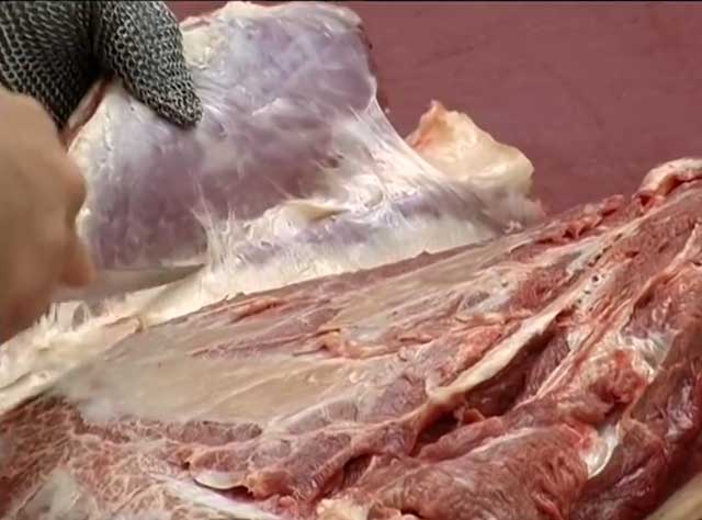 При обробленні тонкі плівки з м'якоті не знімає і якщо ви бачите заветріться і злегка зморшкувату плівку – це не брак. Коли плівка зніметься, м'ясо придбає належний вигляд.