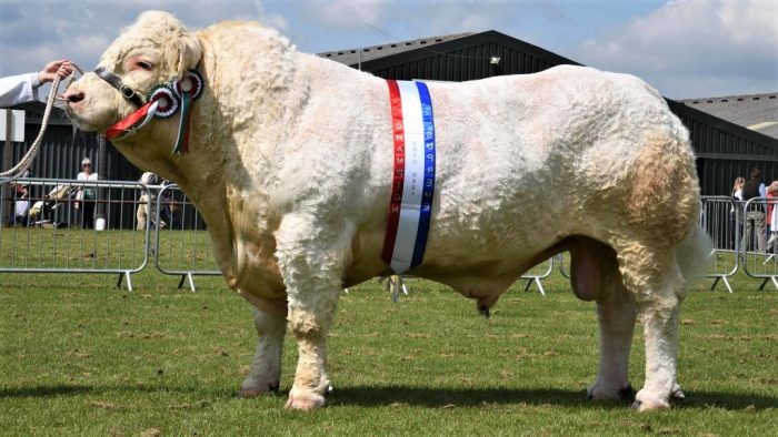 Батьківщина цих величезних тварин – Франція. Забарвлення дуже красивий, кремово-білий, шерсть кучерява. Головні переваги породи – швидке зростання. Телята набирають по 1,7-2,0 кг в день. Дорослі тварини важать 1000-1100 кг.