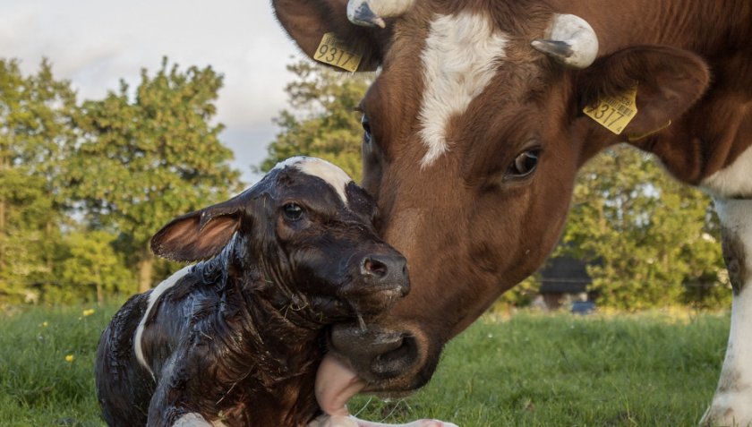 - Потім теляти кладуть ближче до матері, щоб вона звільнила від слизу його органи дихання і насухо його вилизали.