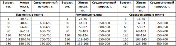 Таблиця, наведена нижче, допоможе вам визначити норми ваги і середньодобового приросту маси на основних етапах розвитку молодняка.