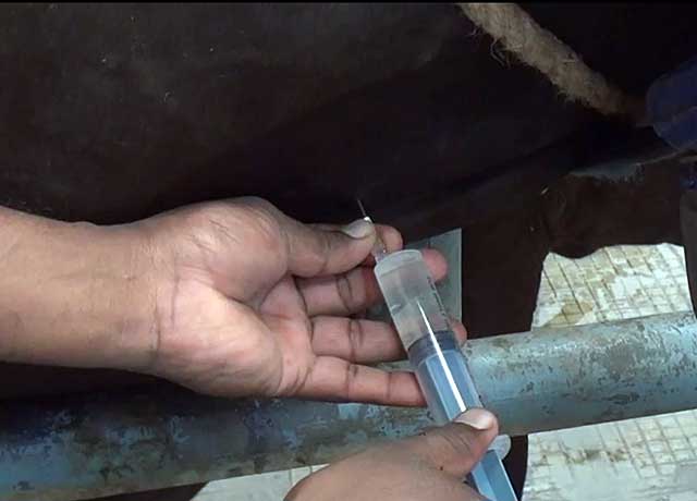 Після того, як ін'єкція зроблена, сосок потрібно на пару хвилин придавити пальцями і зробити масаж, щоб ліки рівномірно поширилося по вимені.