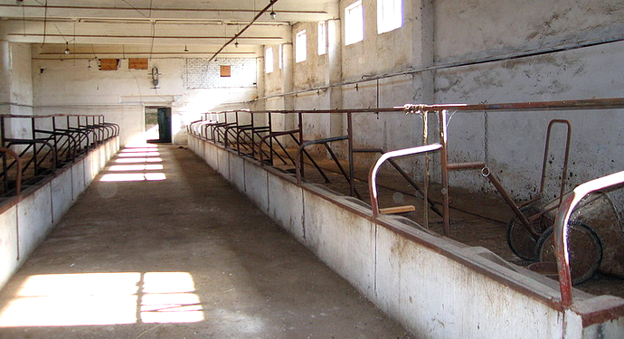 Порада! Необхідно зробити в корівнику ухил близько 4% для стікання випорожнень.
